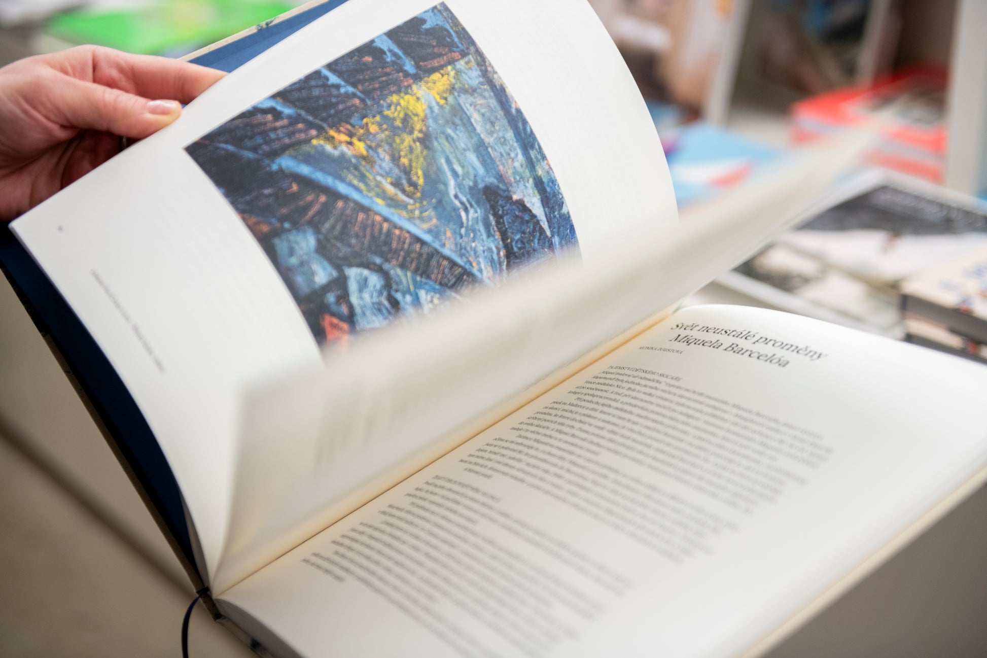 The catalogue for the exhibition Miquel Barceló and the Written Worlds, presents the work of one of Europe’s most prominent contemporary artists in dialogue with the world of literature. The publication maps the painter’s enduring interest in books, their authors, and literary imagination. Barceló relates to literature in a variety of ways, from paintings of fantastical libraries and still lifes with literary motifs to portraits of authors or paintings inspired by novels, short stories, and myths or biblical stories and even hand-made large-format albums and books. The oldest works in the catalogue date back to the 1980s, but it also features some of Barceló’s most recent pieces, including a series of paintings of shipwrecks named after poets who took their own lives. The bilingual publication also contains a brief biography, a bibliography, and two extensive essays. Enrique Juncosa’s curatorial text places the exhibited works in the broader context of Barceló’s oeuvre and traces the artist’s evolving relationship to literary influences over the decades. The essay by Monika Zgustová, a Czech writer based in Spain, focuses on the relationship between images and words, reading Barceló’s works as a unique way of “translating” literature into the language of visual art.
