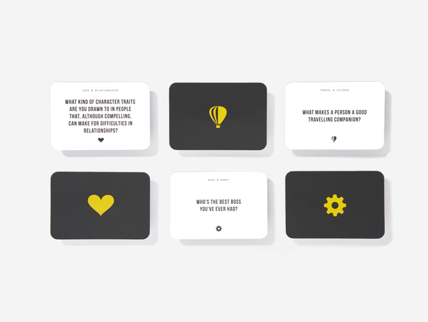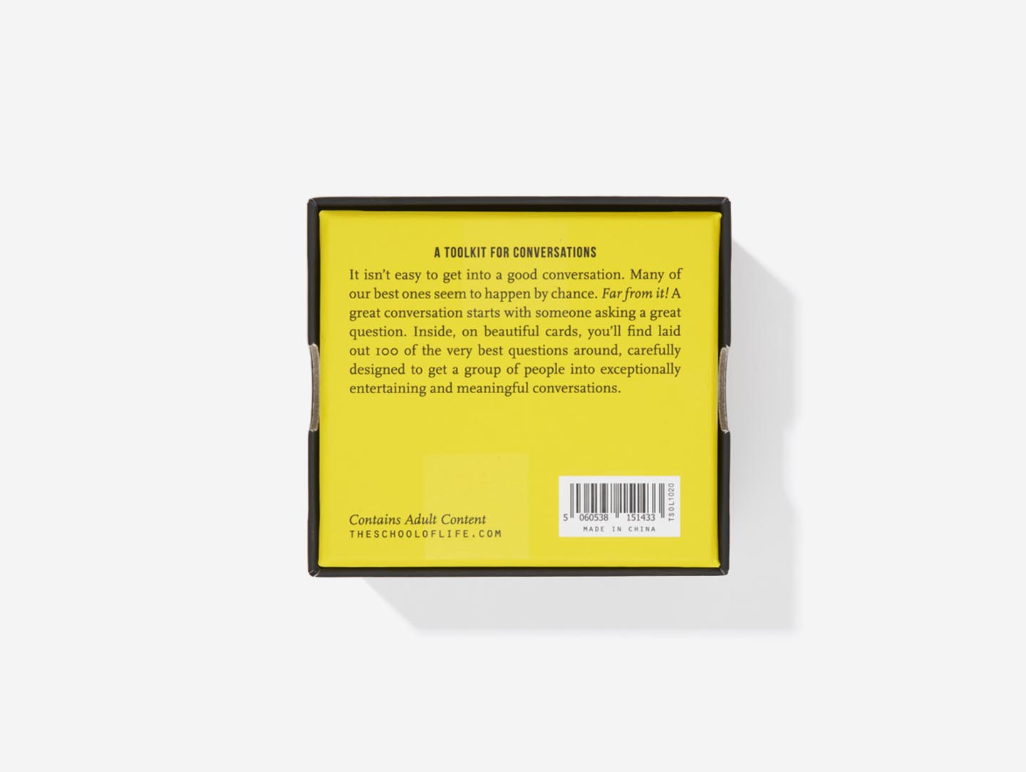 It isn’t easy to get into a good conversation. Many of our best ones seem to happen by chance. Far from it! A great conversation starts with someone asking a great question. Inside, on beautiful cards, you’ll find laid out 100 of the very best questions around, carefully designed by The School of Life to get a group of people into exceptionally entertaining and meaningful conversations.