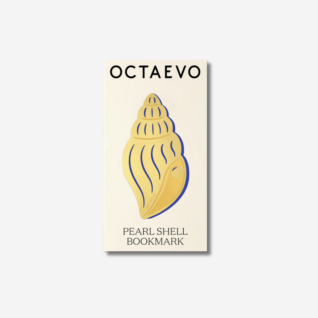 Evoking hidden treasures, this brass bookmark is shaped like a pearl shell resting beneath the waves.
