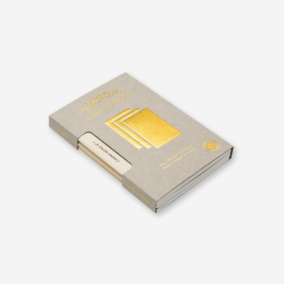 3 passport-sized notebooks covered in textured linen and screen printed with titles of the greatest Mediterranean movies. Find out more about the stories, directors and movie starts on the inside cover. Durable and agile, they are the perfect notebooks for bold thinkers and original minds.