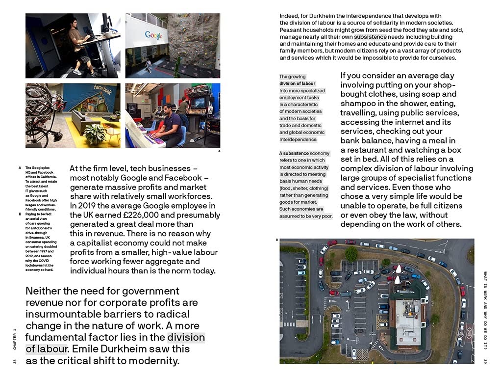 Work allows us to pay the bills. The practical and conceptual divide between work and leisure profoundly shapes our lives. Work is where many of us derive our status and our sense of purpose. Work is so much part of our lives and our culture that we have internalized beliefs about its value and have built our economies and lives around those beliefs. This book reviews how the meaning, status and structure of work have changed across history and cultures. Amidst the Covid-19 crisis, the growth of AI and the climate emergency, it questions the need for the ‘growth escalator’, in which society relies on continuous growth to flourish, and suggests that we should find ways to step off or at least slow down the ‘hedonic treadmill’, in which we crave ever more goods only to tire of them ever more quickly.