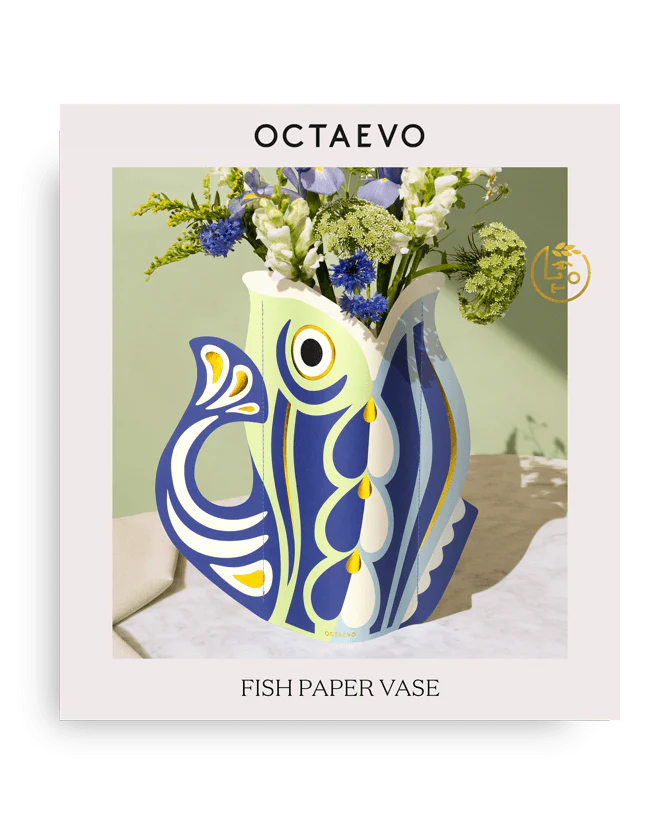 Dive into the Mediterranean’s vibrant underwater world with this handcrafted flower vase, featuring a vibrant fish and made from special waterproof paper.